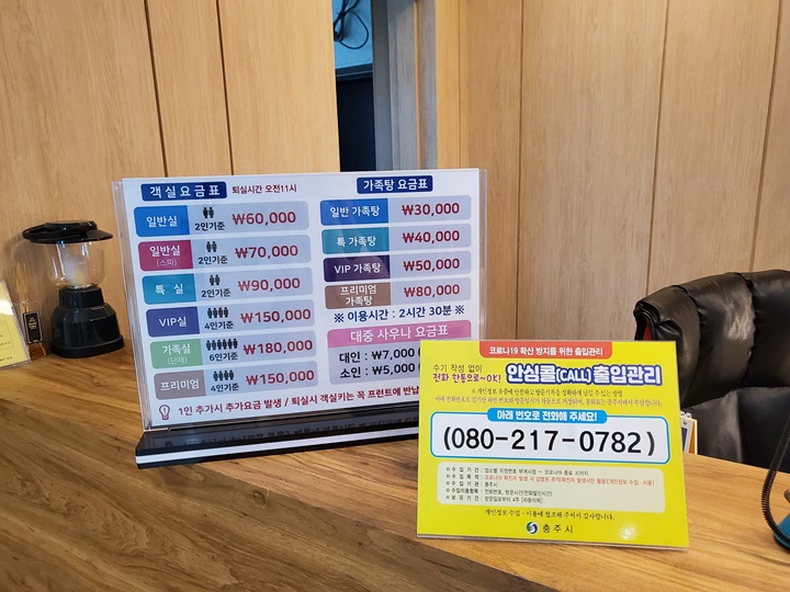 원하는 가족탕은 숙박 예약이 잡혀 있어서 대실이 여의치 않은 상황이었다. 가족탕 이용시간은 2시간 30분이지만, 고민 끝에 2시간 미만 이용하기로 하고 가족 온천탕을 대여하기로 했다.