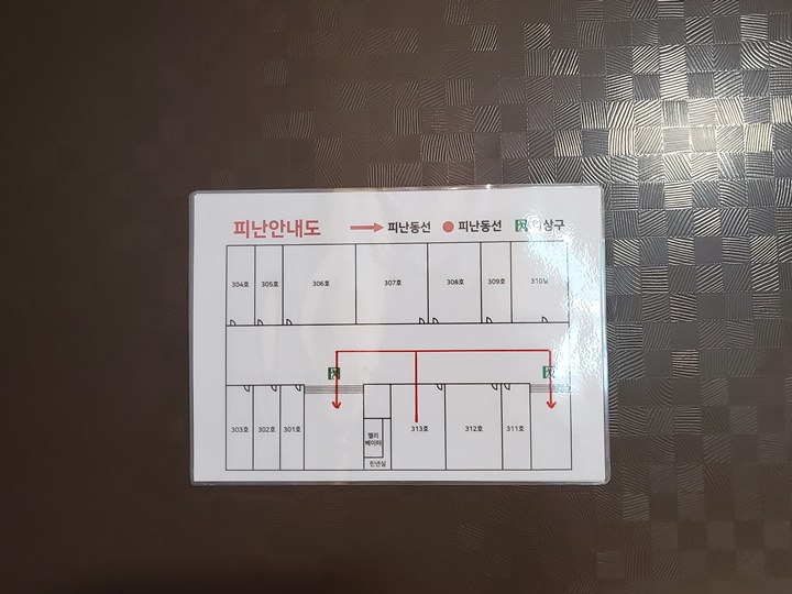 요금 결제후 명부 작성하고 카드키를 받아 들고선 엘리베이터를 탔다. 3층 313호 프리미엄 룸이라 다른 방에 비해 크기가 큼직하다. 더 큰 방은 단체실인 모양이다.