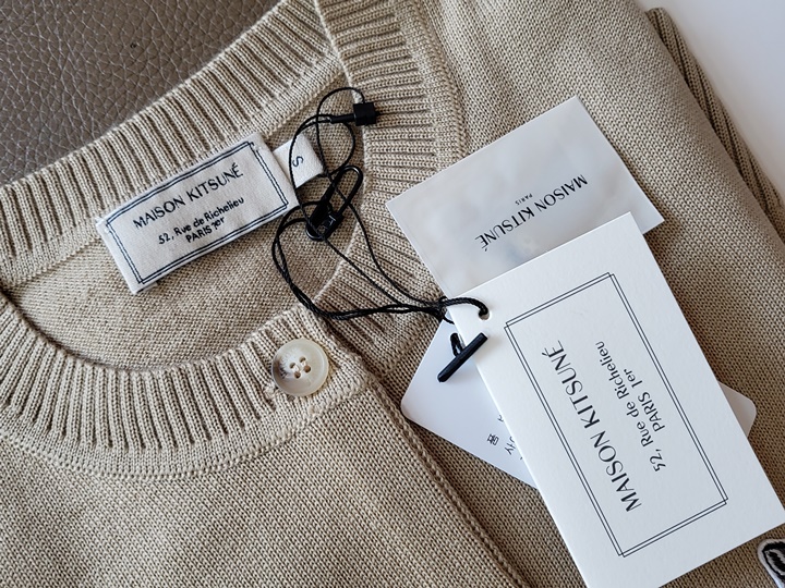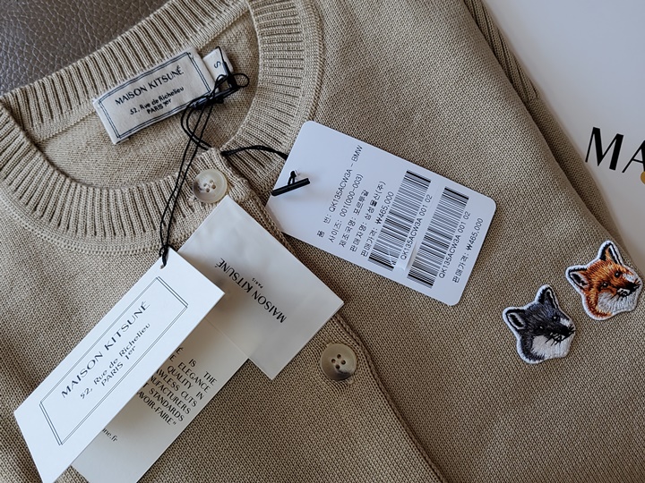 이외에 다른 부분에 뜯김, 이상은 전혀 없기도 하고~ 메종키츠네 가디건이 퀄리티 대비 가격이 비싼 편이라는 이야기를 꽤 들었는데, 음.. 이 신상 가디건은 재질도 무난하고, 무엇보다 여유가 두 마리라 진짜 귀여움도 두우배이다! 여우 때문에 가격이 아깝지는 않다....고 쓰면서 재정 출혈이 큼!!