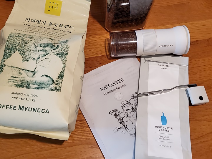 1월에는 블루보틀 벨라 도노반 커피 원두 갈갈해서 맛있게 마셨다. 조 커피에서 분쇄커피 2종을 구입해서 아침저녁으로 부지런히 마셨더니 한 달이 되니 바닥이 보였다. 원래는 코스트코 온라인몰에서 폴바셋 시그니처 블렌드 원두를 구입했는데... 오프라인 매장에 갔더니 폴바셋 가격도 1천 원 더 저렴하고, 할인하고 있는 커피 원두가 있어서 커피명가 올굿블렌드로 바로 갈아탔다~