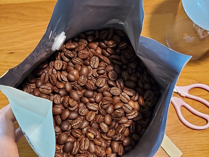 코스트코에 쌓여 있을 때도 은은한 향이 참 좋다고 생각했는데, 봉투를 개봉해보니 익숙하면서 포근한 커피 향이 몽글몽글 올라온다.