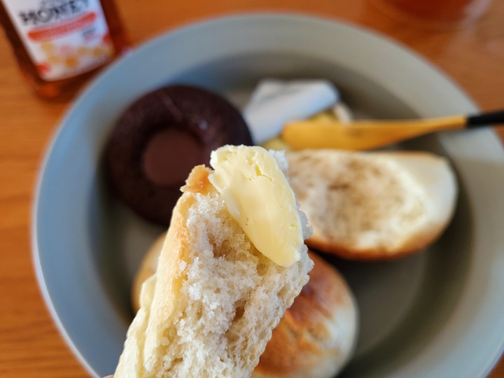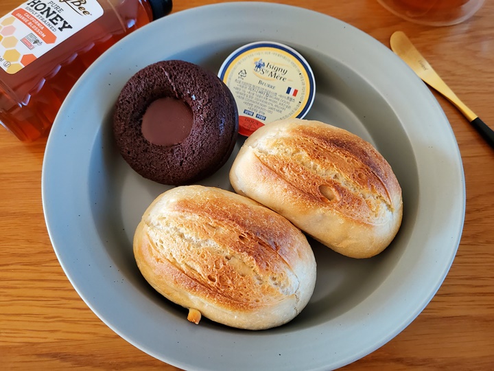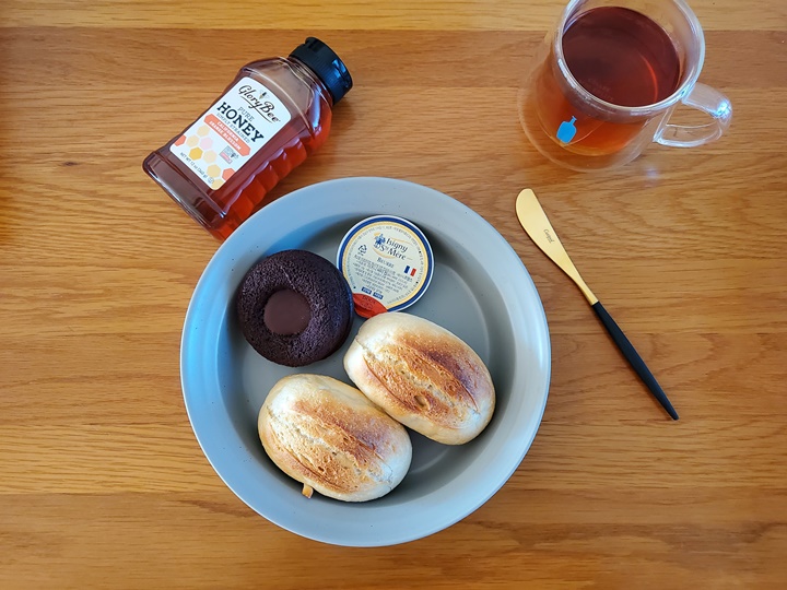 꿀과 버터를 좋아하는 나는 주로 꿀, 버터 조합으로 먹었고, 그냥 손으로 반 툭 잘라먹는 게 편해서 그렇게 먹곤 한다.