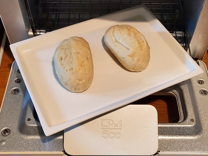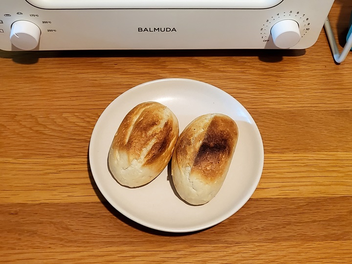 예열을 해야 하는데 귀찮아서 발뮤다 더토스터에 곧바로 넣고 8분 돌린 다음, 추가로 2분 돌렸다. 먹어보니 맛있다~ ^^