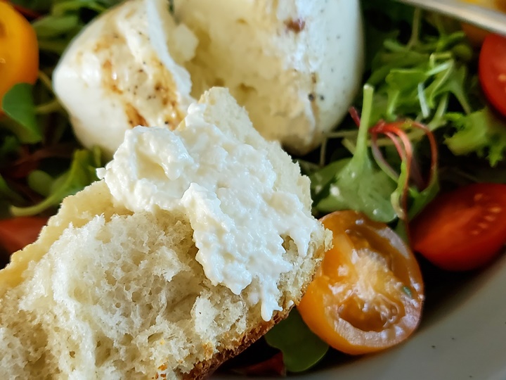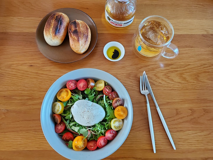 바게트는 올리브 오일+발사믹에 찍어 먹어도 맛있고, 부라타 치즈 발라 먹어도 맛있고, 샐러드 채소 올려서 먹어도 상큼하니 맛 좋다!