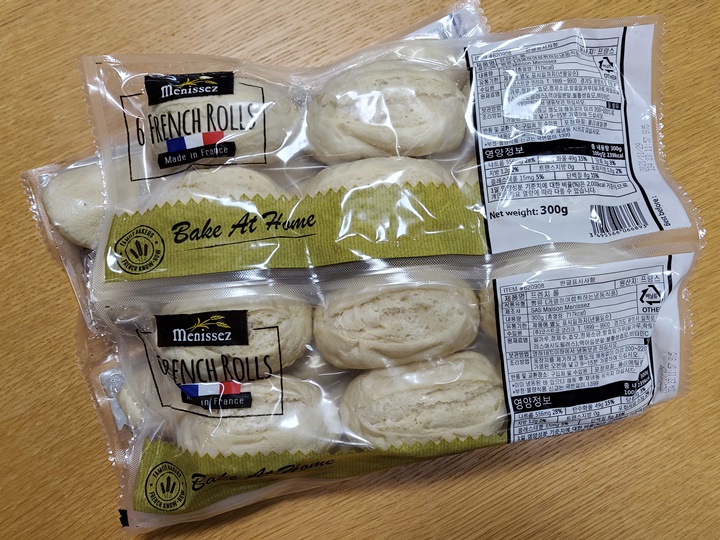 프렌치 롤 생지가 6개씩 들어있는 비닐백이 4개 붙어있다. 가열해서 섭취하는 냉동식품 (빵류)으로 한 봉 지당 총 300g이며 717kcal (100g당 239kcal)이다. 영하 18℃에서 냉동 보관해야 한다.