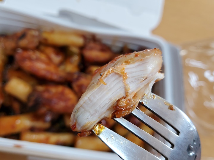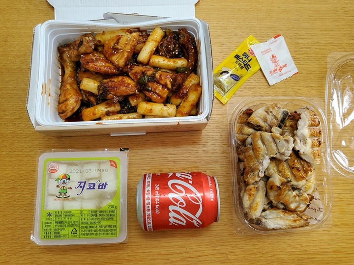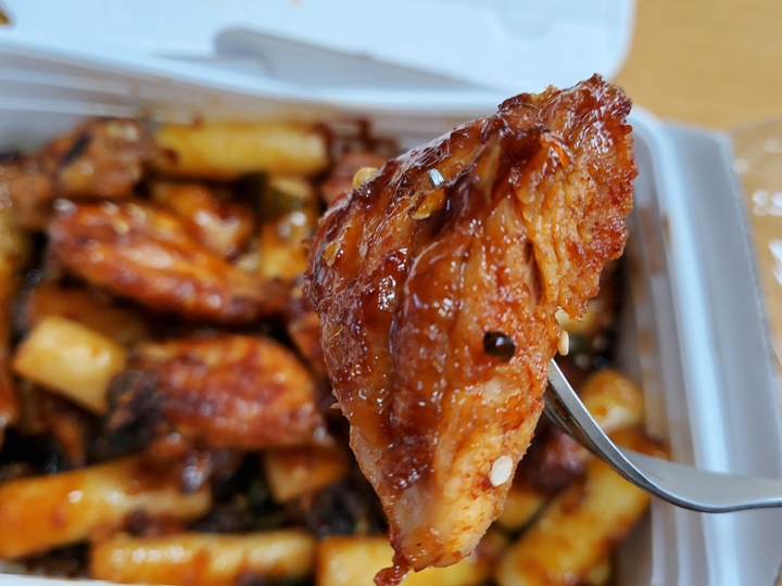 스트레스받았을 때 먹으면 좋은 맛~ 떡사리 추가는 선택이 아니고 필수이다 ^^ 양념이 적당히 스며 간이 적당한 데다 쫄깃해서 식감이 굿굿~ 치킨은 순살치킨도 있는데 우리 동네만 그런 것인지 지코바 전국 체인 통일인지... 반반 치킨은 순살이 없고 뼈 있는 치킨이다. 순살치킨 선호해서 약간 꺼려졌는데, 먹다 보니까 역시 치킨은 뜯어먹는 맛이 최고?!