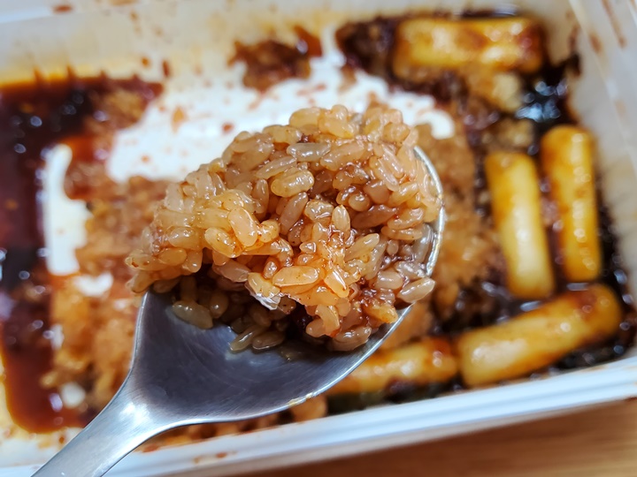 지코바 치킨은 치밥의 정석으로 유명하다. 남은 양념치킨 소스에 밥을 비벼 먹으면 꿀맛 보장! 집에 남은 밥이 있어서 햇반은 굳이 추가할 필요가 없지만, 치킨가게 메뉴에 특이하게도(?) 햇반이 있다. 여튼~ 현미밥 쓱쓱 섞어서 한 숟가락 먹으니 앞서 먹은 숯불양념치킨과 소금구이보다도 치밥이 더 맛있다. 이 맛에 지코바 먹는다!