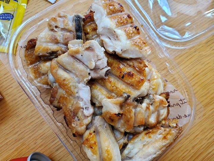 매운 것을 못 먹는 아이를 위해 주문했는데, 소금구이는 매운것 잘 못먹는 사람이나 치킨이 고픈 다이어터에게 적합한 맛? 정. 말. 담. 백. 하. 다! 머스타드다 소금을 꼭 곁들여야 할 것 같은 지코바 소금구이되시겠다 ^^