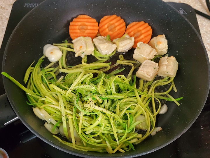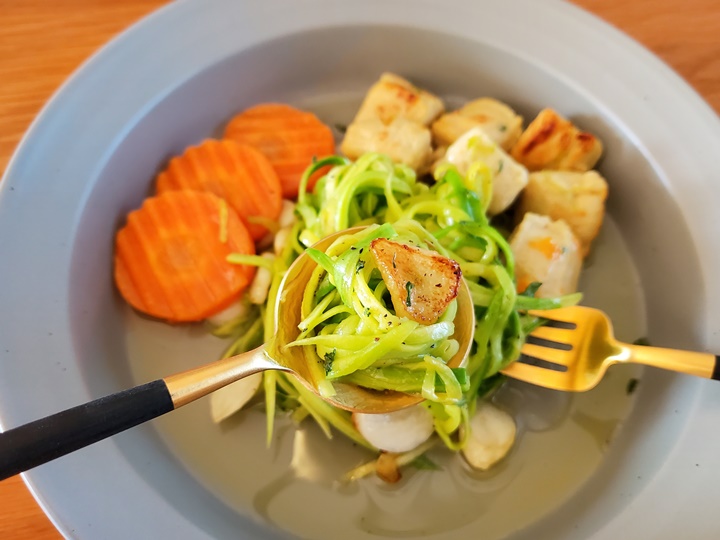 최근 성능이 좋은 채칼을 구입했다. 가장 먼저 뭘 해볼까 고민하다가 야채 슬라이서를 이용해서 야채면 채소면을 뽑아 뚝딱 파스타를 만들어 먹기로 했다. 만드는 시간도 10분 내외, 맛있기도 하