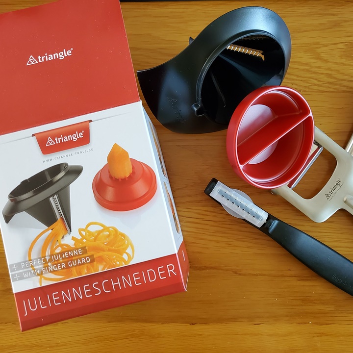 며칠 오프라인 매장에서 사 온 채칼을 사용하던 중 온라인몰에서 구입한 트라이앵글 앤드리스 줄리앤커터, 배송이 늦어져서 그렇지 이걸 먼저 구입했다. 경이로운 소문에서 위겐역을 맡았던 배우 문숙님 유튜브 채널을 종종 찾아보는데, 영상 중 당근면을 뽑는 나선형 슬라이서를 보곤 불꽃 검색! 앤드리스 줄리엔커터랑 가장 비슷한 것 같아서 냉큼 샀던 것. 코스트코 온라인몰 판매가 25,990원이었다. 이렇게 해서 트라이앵글 4종 완 to the 성!