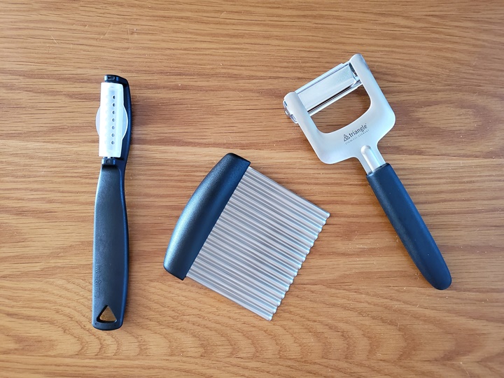 버티컬 필러 (Vertical peeler 핸들형 필러), 크링클커터 (Crinkle cutter 물결무늬 모양칼), 줄리앤커터 (Julienne cutter 핸디형 채칼)로 구성되어 있다.