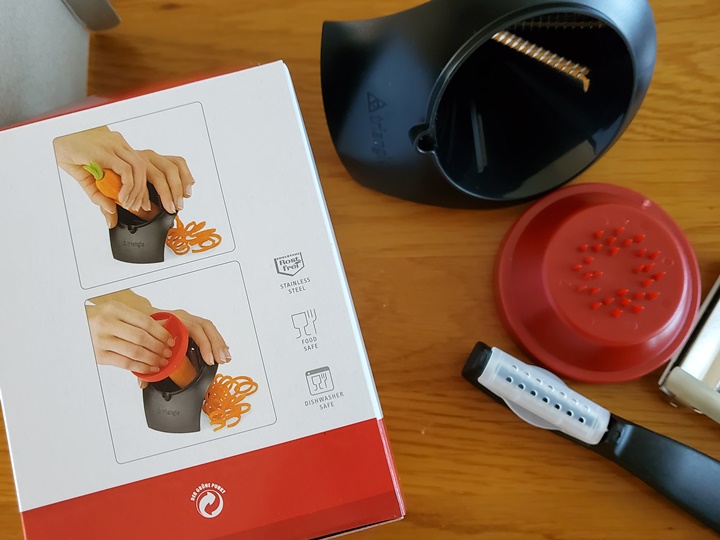 호박면 파스타나 당근 레페 등 만들 때 유용한 채칼, 김밥 쌀 때도 요긴하게 사용할 것 같다.
