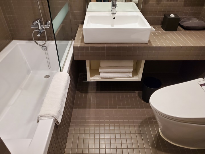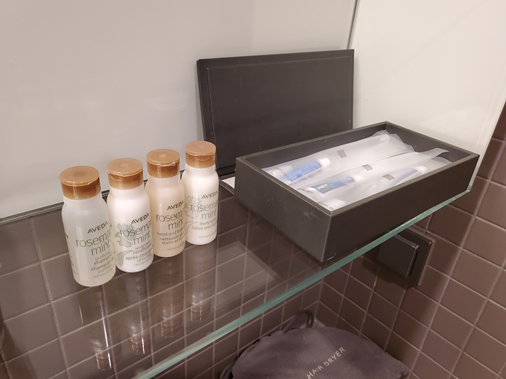 치약, 칫솔, 빗, 면봉, 화장솜 등이 구비되어 있으며, 드라이어도 비치되어 있다. 배쓰 어메니티는 아베다 로즈마리민트 제품으로 5종(샴푸, 컨디셔너, 샤워젤, 바디로션, 비누) 제공된다.