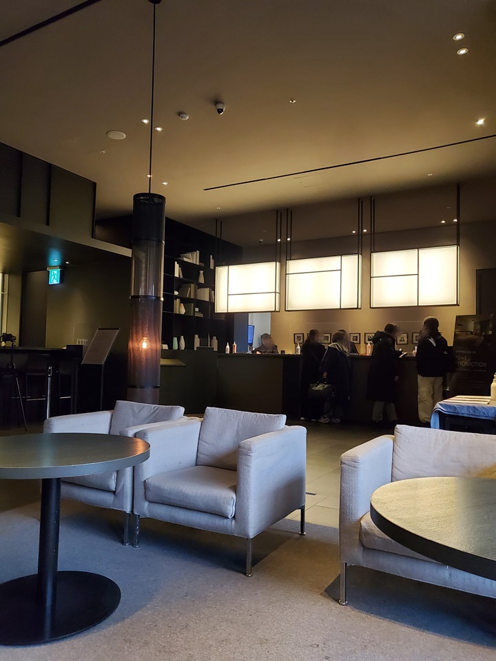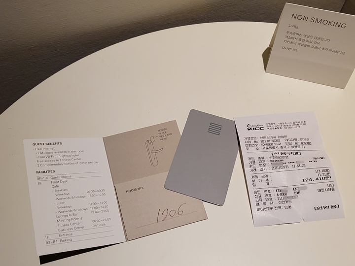볼일을 보고 다시 올라온 신라스테이 광화문 8층 로비 라운지, 휴대폰 번호를 입력한 다음 체크인 순서를 기다렸다. 일요일이었는데도 숙박객이 적지 않아서 꽤 기다려야 했다. 체크인 수속 끝에는 입실하는 인원 전부 체온 체크 등을 하고, 간단한 서류를 한 장씩 작성해서 제출해야 한다.