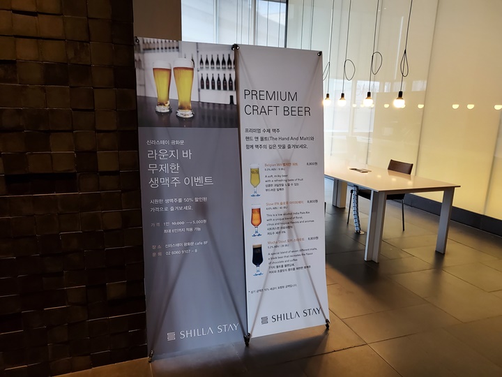이런 건 다 이용할 생각이 없었지만, 신라스테이 광화문 카페 무제한 생맥주 이벤트는 이용해보려고 했건만... 1인 10,000원 5,000원 라운지 바 무제한 생맥주 이벤트는 금요일, 토요일에만 진행한다고 한다. 일요일 투숙객은 웁니다 ㅠㅠ