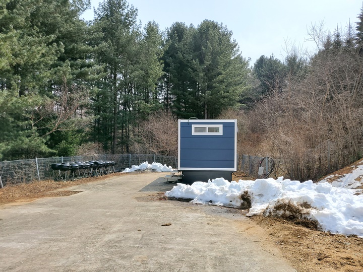 화장실은 캠핑장 끝쪽 컨테이너 박스로 마련되어 있다. 밖에서 봤을 땐 작아서 시설도 별로일 것 같았는데, 여자 3칸, 세면대, 핸드 드라이어 등도 갖추고 있고 청소상태도 양호했다.