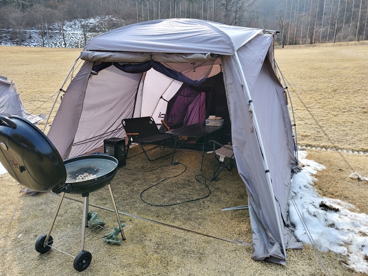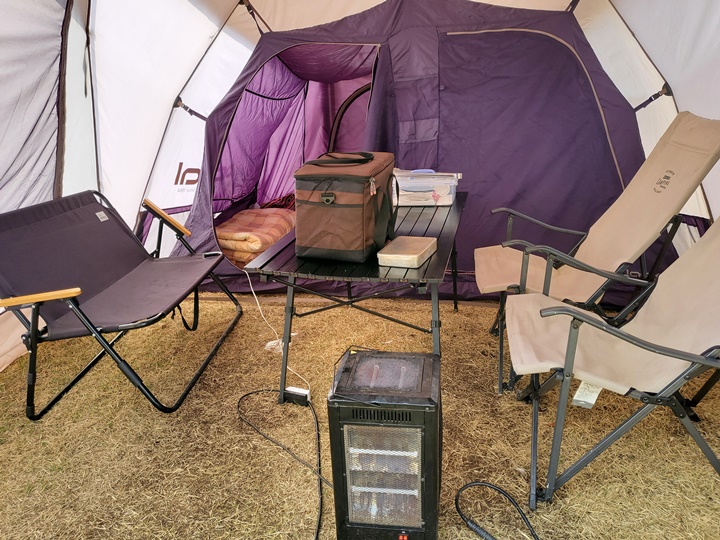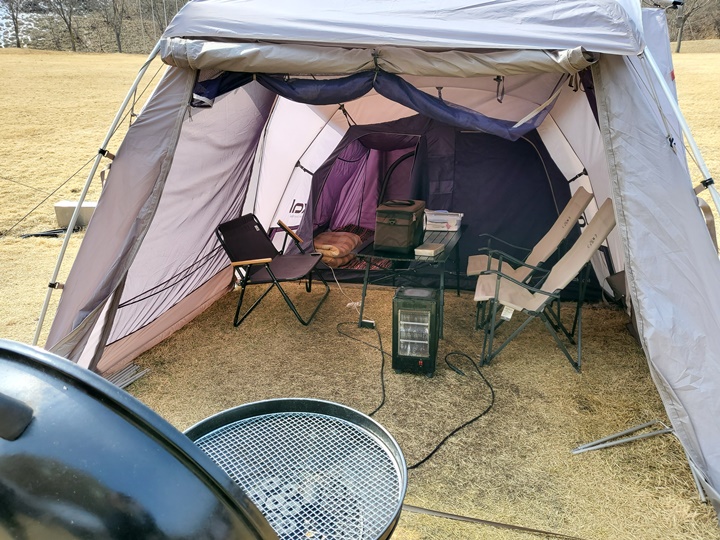 난로도 있고, 안쪽 텐트에는 전기장판도 깔려 있어서 추운 날씨에도 거뜬할 것 같기는 했다. 우리가 이용한 시간대에는 그리 춥지 않아서 난로도, 장판도 켤 필요는 없었다.