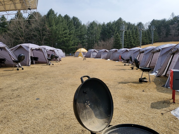휘닉스파크 콘도 블루동에서 1박을 한 다음 날, 조식을 후다닥 먹고 방을 바꿨다. 스위트에 비해 스카이 로얄룸이 방 크기, 시설 등에서 쾌적함이 남달랐기 때문에 밖에 나가기 싫을 정도였지만... 관광 곤돌라를 타고 몽블랑에 올라갔다가, 예약해둔 포레스트 캠핑 BBQ 로 향했다.