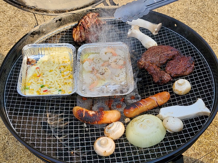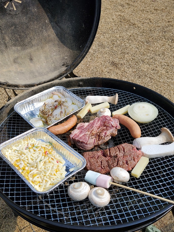 뒤늦게 굽기 시작한 소고기, 돼지고기, 소세지, 버섯, 구워 먹는 치즈 등등~ 마쉬멜로우는 금세 타버리기 때문에 온신경을 집중하고 있어야 했다 ^^ㅋ
