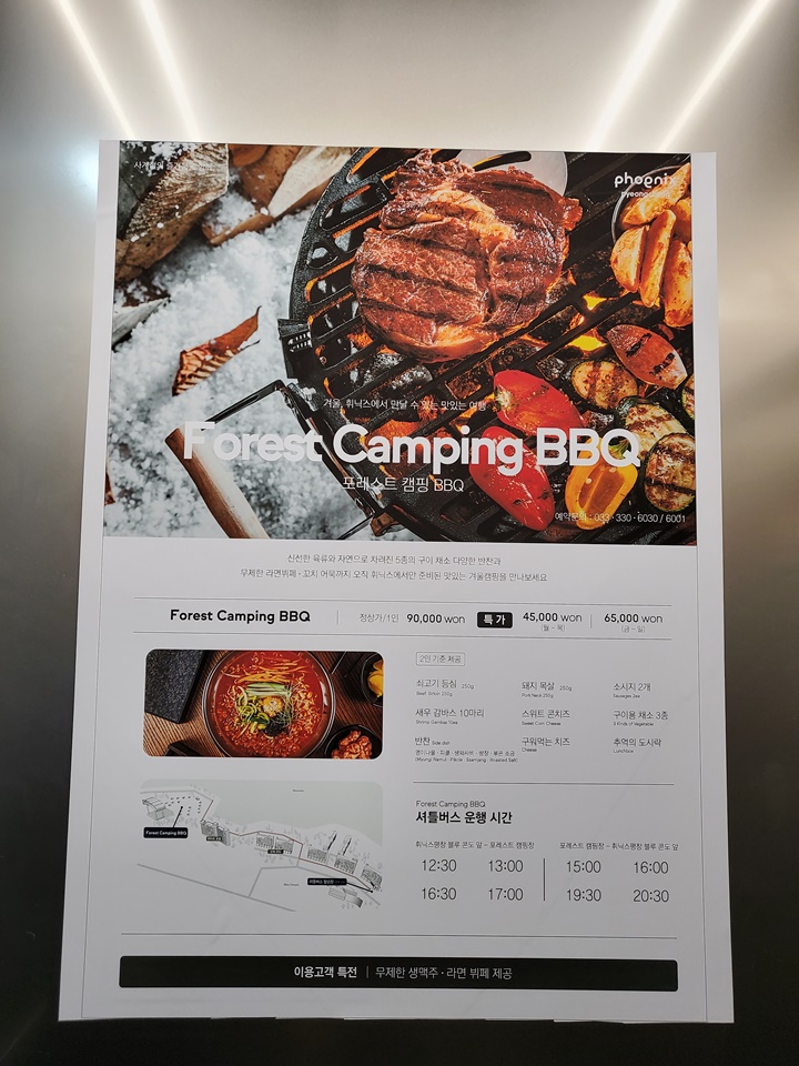 평창 휘닉스파크 포레스트 캠핑 BBQ 메뉴