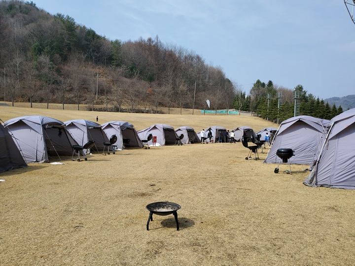 주말 저녁에는 거의 풀북이고, 우리가 이용했던 토요일 점심시간대에도 텐트 몇 개 남기고 모두 찼다고 한다. 결제를 마치면 직원이 배정된 텐트로 안내해주면서 이용방법, 주의사항, 사용 후 정리 등에 대해 자세히 설명해 준다.