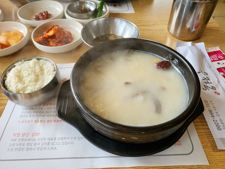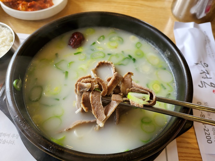 개인적으로 맑은 한우곰탕을 선호하는 편이긴 하지만, 우정옥 뽀얀 곰탕도 만족스럽게 먹었다. 따로 간을 하지 않아도 담백하고 충실한 맛을 느낄 수 있고, 부담스럽지 않은 가격으로 만족스럽게 한 끼 해결할 수 있었기 때문이다.