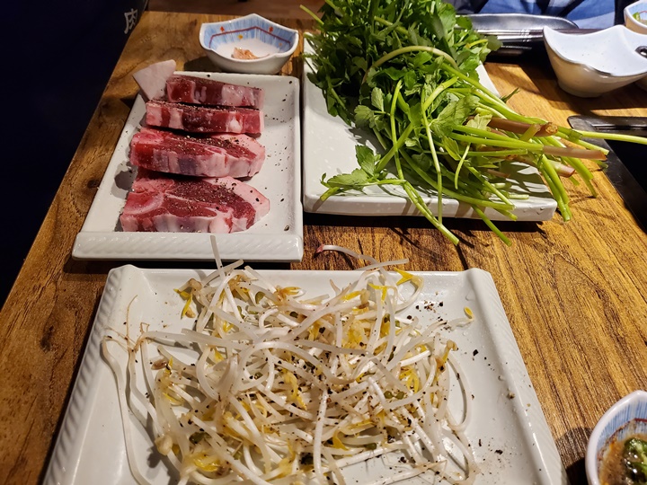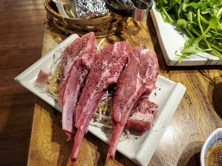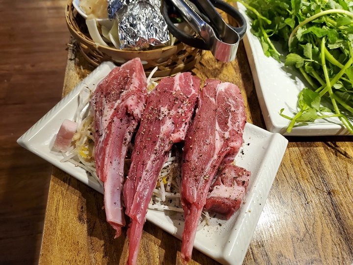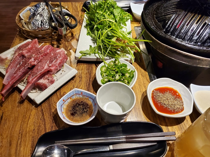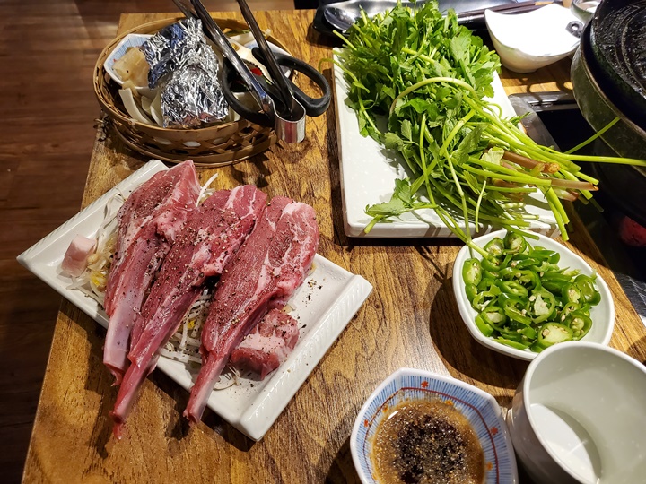 양갈비 3대 나온 것을 보니 양이 너무 적은 것 같아서, 끊김없이 연결해서 먹기 위해서 양 티본 2인분을 추가했다.