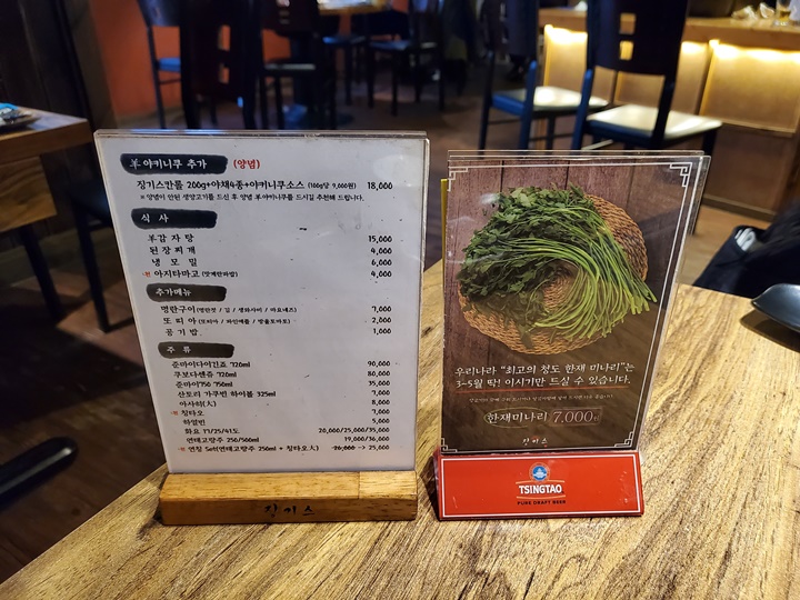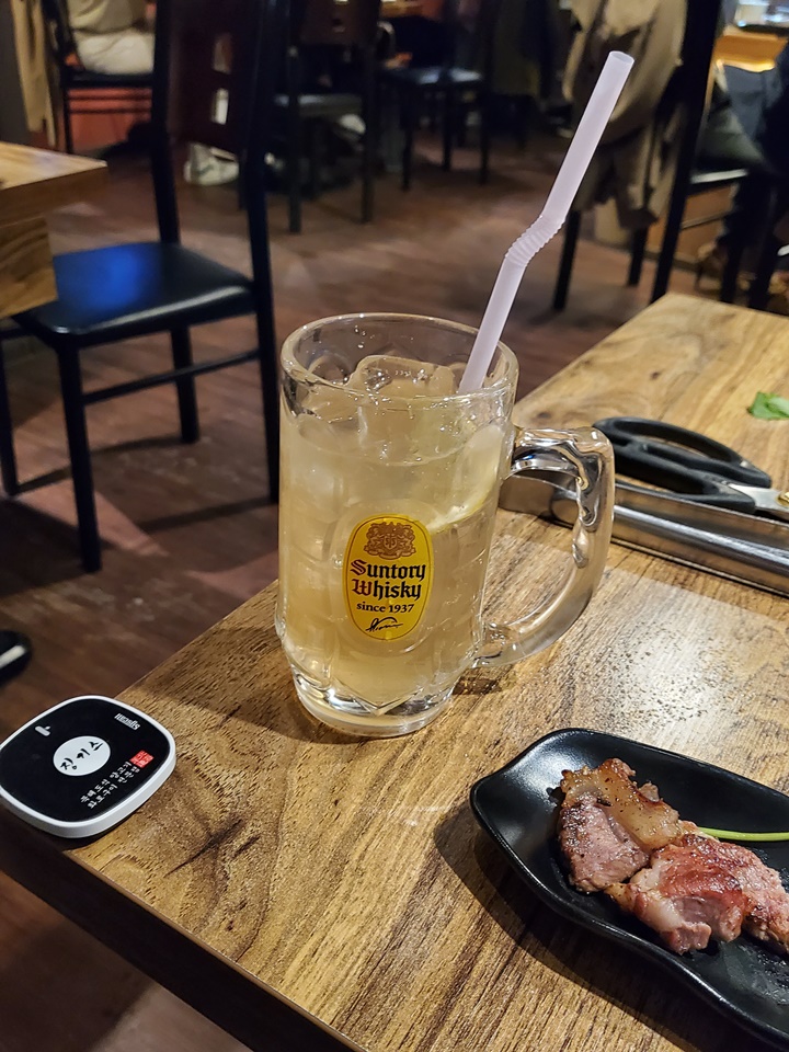 하이볼 7,000원 지난번 방문시에는 짐빔하이볼만 되었는데, 이번엔 가쿠하이볼도 가능했다. 집에서 말아먹으면 이맛이 아닌데 징기스에서 먹으면 왜 이렇게 맛있는지... 역시 양고기엔 하이볼이다. 하핫!
