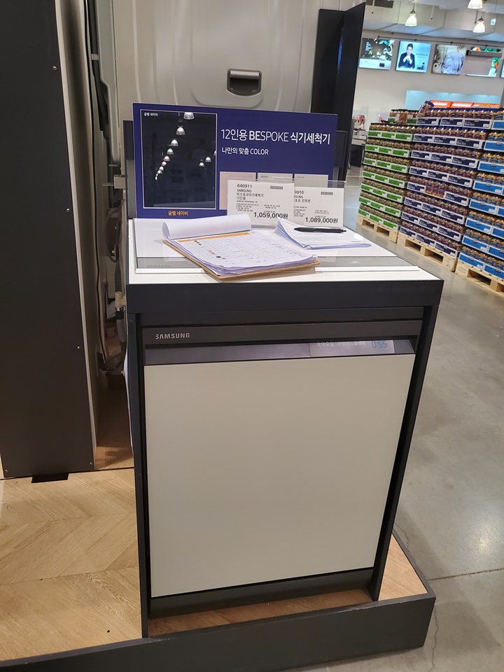 식기세척기는 구입할 생각이 없었는데, 아무래도... 이모님을 들이면 세상이 바뀐다는 선배님들의 조언을 새겨 듣고 이사가면 식세기와 물걸레 로봇 청소기는 필히 구입하기로 다짐했다. 염두에 둔 모델은 바로 비스포크 식기세척기 12인용, 색상은 코타차콜? 생각하고 있는데 코스트코 매장엔 전시되어 있지 않은 듯~