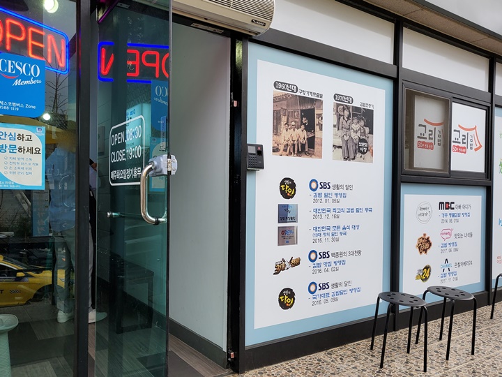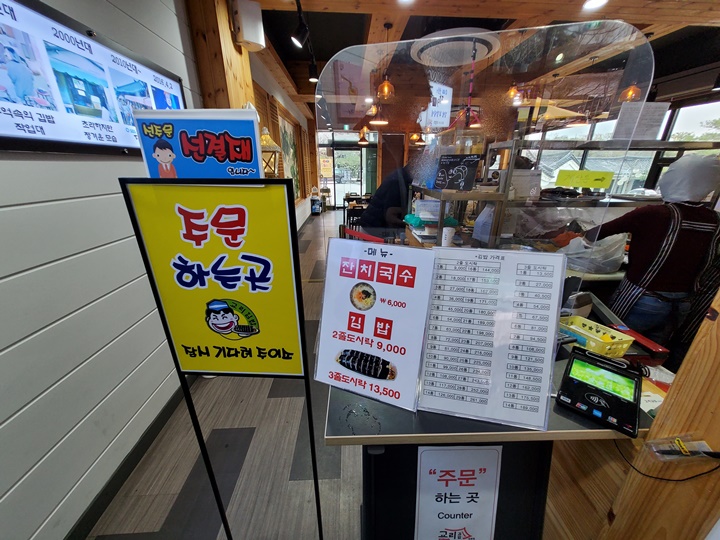 코모도호텔 경주에서 1박을 했는데, 교리김밥 보문점은 코모도호텔 동문 앞에 위치하고 있다. 부러 찾으려고 할 필요도 없이 줄이 길어서 멀리서도 한눈에 저기가 전국3대김밥집이라는 것을 알아볼 수 있을 정도~ 대기손님은 많았지만, 대부분이 포장 손님이고 금방 포장이 되기 때문에 기다린 시간은 10분도 되지 않았다. 빠름 빠름~~