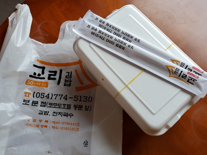 경주 여행을 가면 교리김밥을 꼭 먹어봐야 한다고? 작년에 경주 여행을 했을 땐 쌈밥을 먹느라 우선순위에 밀렸지만 지난 주말 다녀온 경주여행에서는 운이 좋게 먹어볼 수 있었다. 교리김밥 본점은 아니었지만, 보문점이 숙소 바로 옆에 있었기 때문에 비교적 쉽게 포장해올 수 있었다.