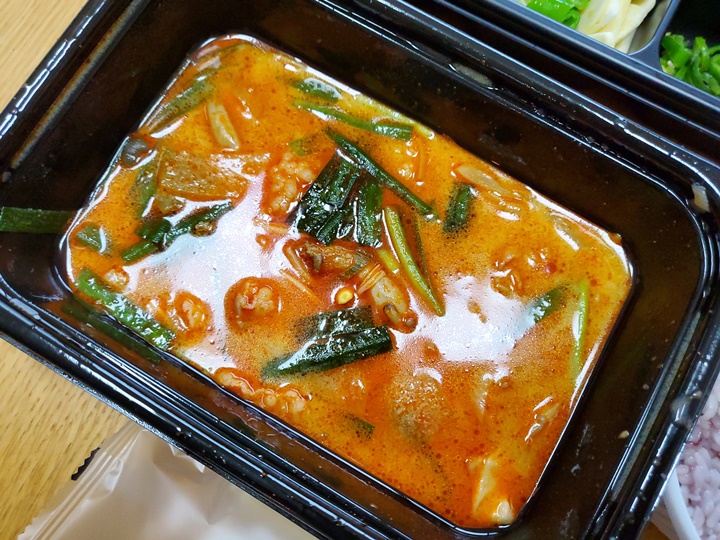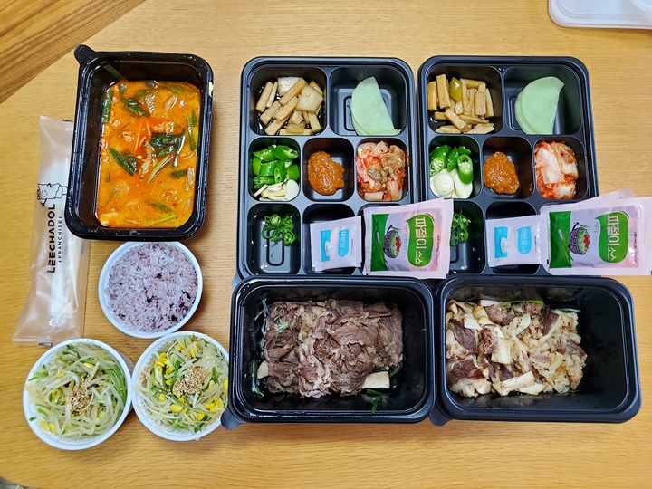 도시락 용기에 포장이 되어서 주문 메뉴가 깔끔하게 도착했다. 배달 주문을 하면 간편해서 좋기는 한데, 한번 주문당 나오는 플라스틱류가 엄청 많다.... 다행인(?) 점은 포개져서 부피는 줄일 수 있다는 거...?