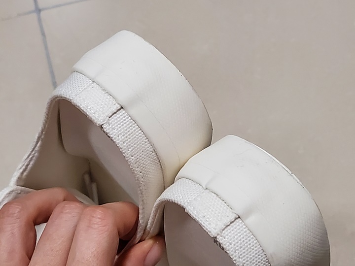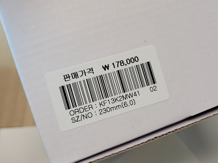 본래 발 사이즈는 225이고, 구호 코튼 컨버스 스니커즈도 225를 잘 신고 있지만 후기를 살펴보니 사이즈 업을 하라고 해서 230을 주문했다. 신어보니 정사이즈로 주문했어도 괜찮았을 것 같다. 이 신발은 발볼이 넉넉한 편이라 칼발이라면 굳이 사이즈업 안 해도 될 듯.