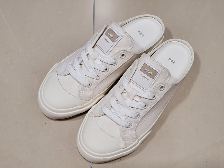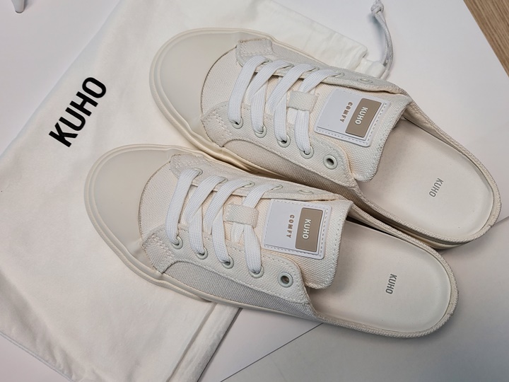 예전에는 뒤꿈치만 오픈된 뮬을 신는 게 좀 이상하게 느껴졌는데 요즘은 매우 즐겨 신는다. 신고 벗기가 편하고, 컨버스 뮬의 경우 여기저기 코디하기 좋은 만능 템이기 때문이다. 주구장창 열심히 신고 다니던 뮬이 너덜너덜해져서 새로 구입했는데, 열흘쯤 전에 구호 컨버스 뮬 화이트가 두둥- 도착했다.