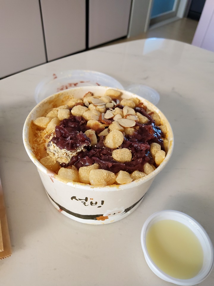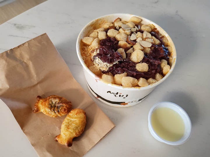 정확하게는 설빙 인기 메뉴 중 하나라는 팥인절미설빙과 한입쏙붕어빵 (팥)을 주문했다. '팥붕' 보는 순간... 약간 욕 같다 싶었는데 ㅋㅋㅋ 남편도 보곤 이거 좀 욕 같다고 ㅋㅋㅋㅋ 우리 부부의 언어 습관과 교양 수준을 알 수 있는 대목이다;;;