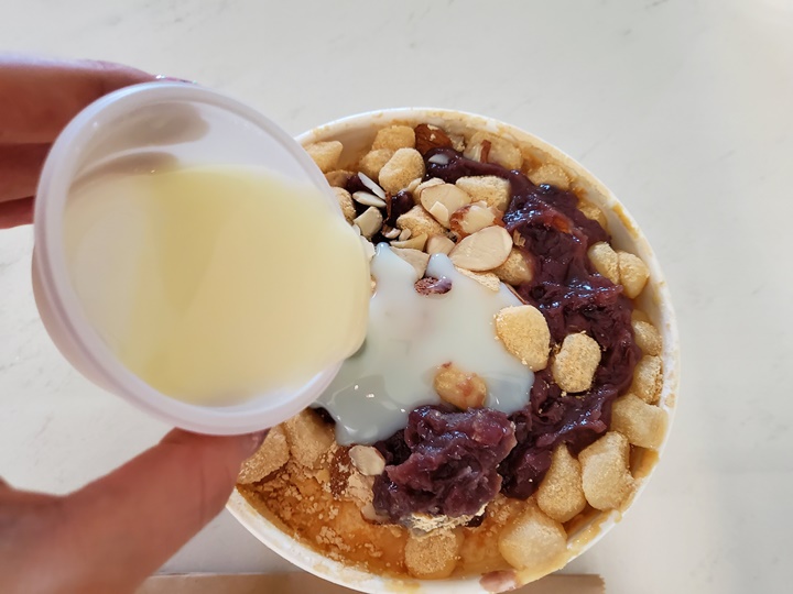 별도 동봉된 소스는 중간중간 조금씩 뿌려 먹어야 끝까지 맛있고, 생과일이나 기타 토핑류는 설빙 위 듬뿍 올려 먹으면 더욱 풍부한 식감을 느낄 수 있다는 설명이었지만, 나는 이미 다 뿌려버린 거... 이래 먹나 저래 먹나 맛있겠지~~