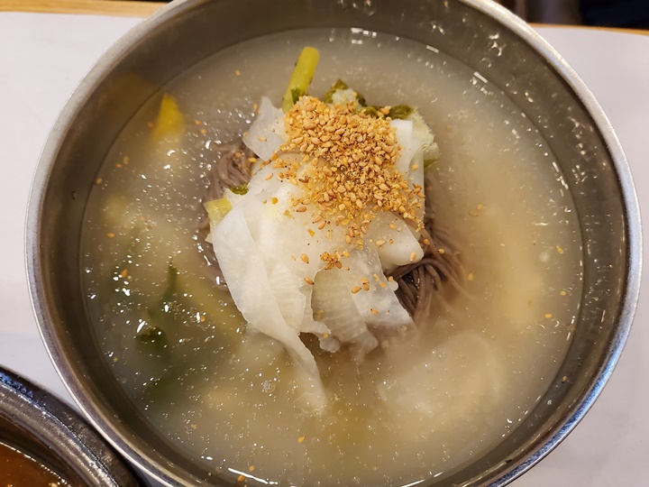 세종 맛집 산장가든 동치미국수 6,000원 한여름은 아니지만 벌써 꽤나 더우므로 시원하게 동치미국수 후루룩하면 좋을 것 같아서 주문했는데... 비주얼은 침꼴깍 넘어가지만 맛은 보통이었다.