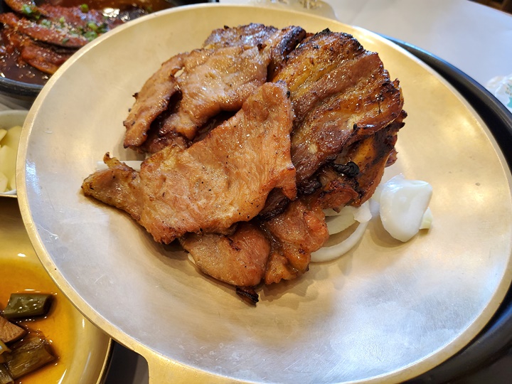 식사메뉴는 적당한 가격, 보통의 맛이었지만 돼지갈비 맛집답게 주메뉴인 원조숯불갈비는 양도 많고 맛도 좋았다. 먹는 내내 온기를 유지하며 먹을 수 있고, 예상했던 것보다 양도 많았다. 원래 3인분 주문하려고 했는데, 3인분 주문했으면 1인분은 고스란히 남겼을 듯... 살살 녹을 정도로 부드럽지는 않아 치아가 불편한 어르신들이 드시기에는 불편할 수도 있을 것 같은데, 둘러보면 연세 드신 부모님 또래 분들, 아이 동반 손님들도 많았다. 남녀노소에게 인기 있는 맛집인 듯?