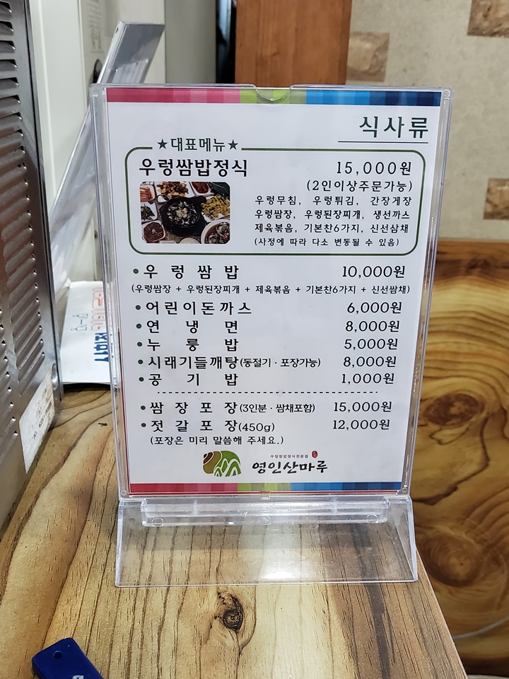 가기 전부터 영인산마루 대표메뉴인 우렁쌈밥정식에 어린이돈까스를 주문할 거라고 미리 생각해둔 터라 주문도 바로바로~