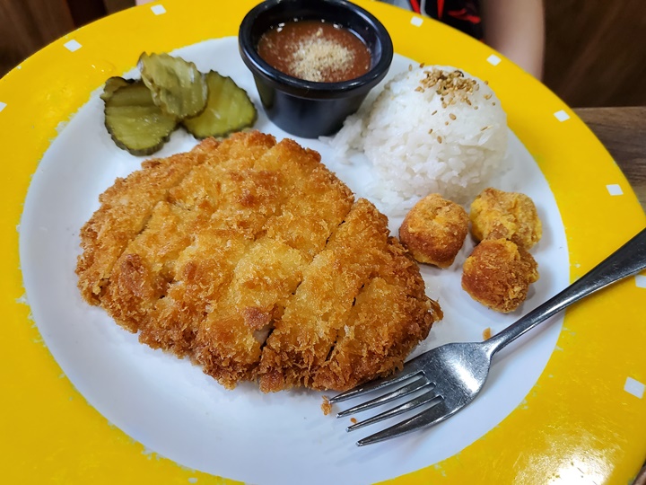 영인산마루 어린이돈까스 6,000원 아이가 먹을 것으로는 어린이돈까스를 주문했는데, 딱 아이가 먹을 만큼의 양이 갓 튀겨 나와서 맛있게 다 비우고 나왔다.