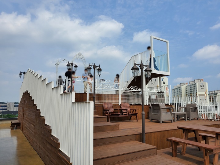 3층과 4층으로 이루어진 루프탑에서는 대한민국에서 세 번째로 긴 교량인 서해대교가 보인다. 유리창으로 된 컨테이너가 세 대? 준비되어 있고, 사진 찍기 좋은 콘텐츠도 곳곳에 설치되어 있다.