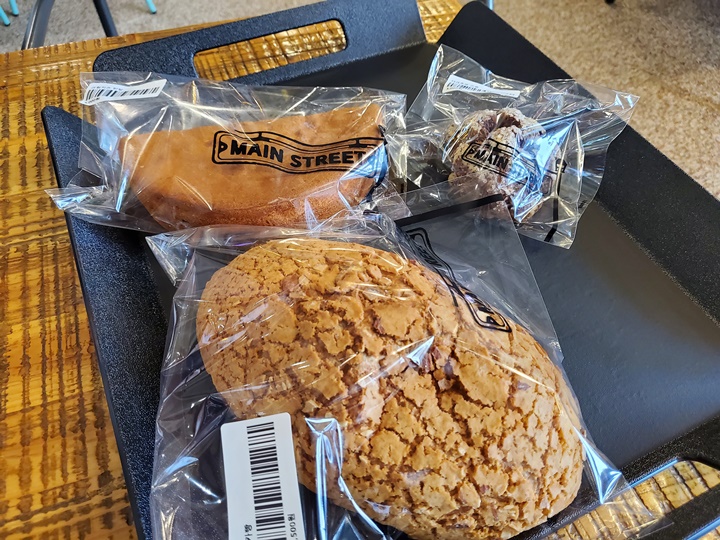 빵은 이렇게 모카빵 (5,500원) 다크초코 스콘 (3,000원) 크림치즈 반달 (5,000원)을 구입했다. 할매입맛 빵순이라 모카빵을 특히 좋아하는데 지금까지 먹어본 모카빵 중 최고의 맛! 모카빵 안 좋아하는 남편도 이거 진짜 맛있다면서 절반이나 뺏어 먹었다;;; 그냥 내가 사 온 빵 사진만 올리기엔 평택 메인스트리트 빵 종류가 다양하고 맛있어서 찍어온 사진을 쭉 올려본다.