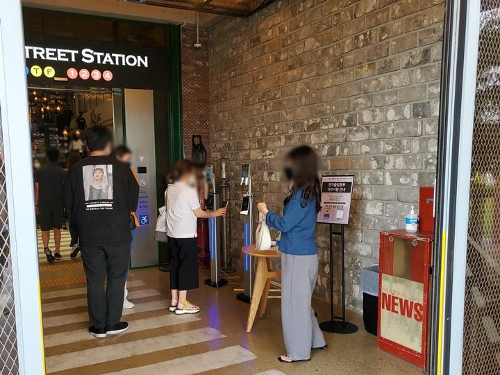영업시간은 오전 10시부터 오후 10시까지이나 층별 마감시간이 약간 다르다. 1, 2층은 밤 9시까지, 3층은 10시까지이다. 차례로 체온 측정 및 QR코드를 찍고, 손 소독을 하고 입장했다.