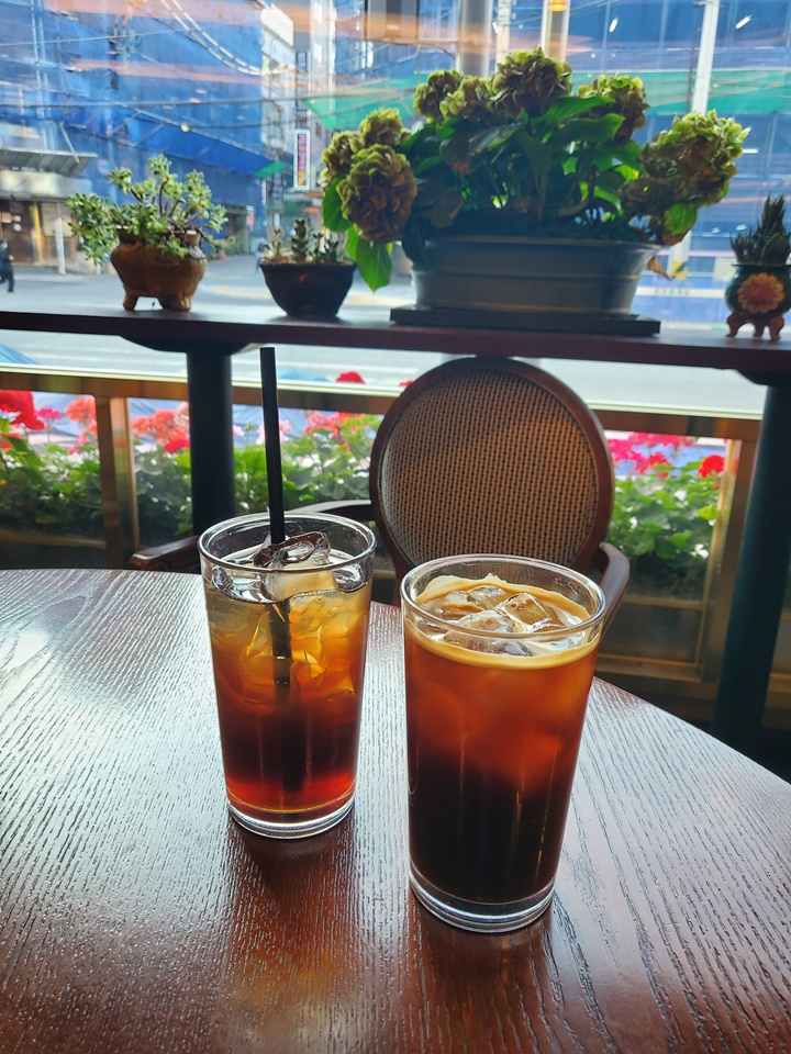 아이스 아메리카노가 3,500원이고 아이스티 레몬이 3,000원인데 각 1천 원씩 할인되어 4,500원에 마실 수 있었다. 분위기는 앤틱(?)한데, 테이블 간 간격이 넓고 손님이 많지 않은 시간대 (다들 저녁 먹을 시간인 평일 저녁 6시경) 라 한가로이 음료까지 마시니 더할 나위 없이 좋았다.