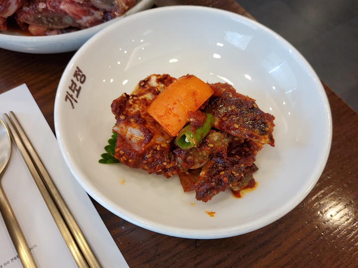 고기가 어느 정도 익어갈 즈음에 기본 반찬도 나오기 시작했다. 처음으로 등장한 것은 바로 양념게장이었다. 그런데 따로 한쪽에 두시면서, 손질해서 주신다고 하고 다른 반찬들부터 정위치에 착착 놓였다.