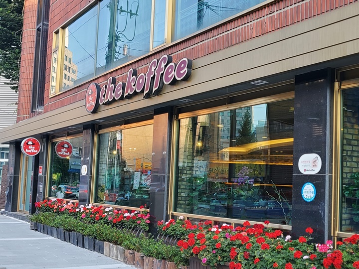 계산은 엘리베이터를 타고 내려와 가보정 1관 1층에서 했다. 계산대에서 보니 더 커피 음료 천 원씩 할인이라고 해서 소화시킬 겸 가보기로 했다.
