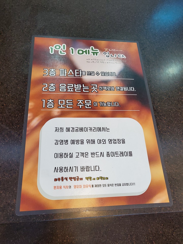 화성에 있는 대형 베이커리 숲 카페로 유명한 더 포레가 2-30대에게 인기가 있다면, 혜경궁 베이커리는 40대 후반? 50대 이상에게 인기가 있어 보인다. 메뉴에도 반영되듯 수정과, 수정과라떼 같은 메뉴가 눈에 띄었다.