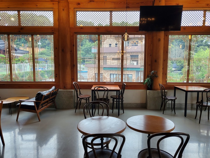 무더운 기온은 아니지만 비오기 전 후텁지근 끈적한 날씨라 야외보다는 실내에서 쉬는 게 좋을 것 같아서 푹신한 소파 자리에 앉았다. 손님이 많지 않아 조용하고... 은은한 경음악만 들렸다. 화성 혜경궁 베이커리 카페에서 트로트를 틀어준다는 후기를 보고 뜨악했는데... 그건 잠시 후에 ^^ㅋ