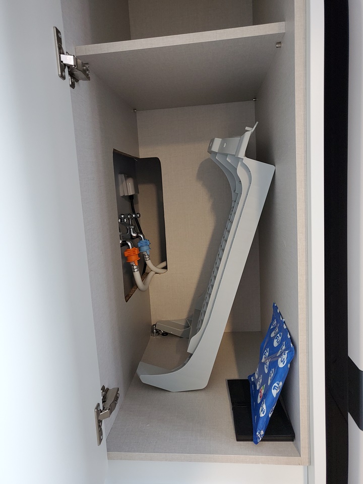 엘지 워시타워 사이즈 좌우 5CM 여유 두고 제작했고, 뒷편도 딱 붙이지 않게 수납장을 만들었다. 배수구가 약간 아쉽지만, 뭐 대략 만족스러운 LG 엘지 오브제 워시타워 세탁기 건조기 & 다용도실 수납장