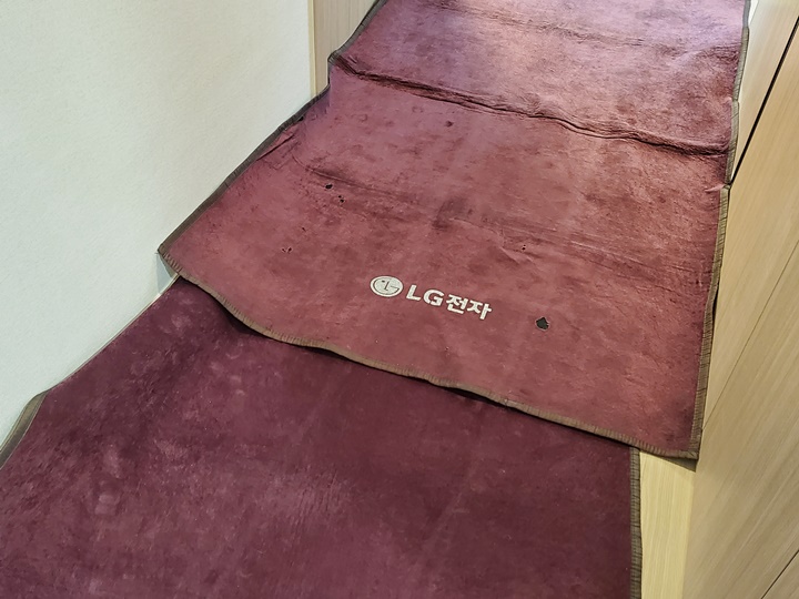 가전과 가구가 모두 한날 들어오기로 했는데, 제일 시간을 잘 지킨 업체가 LG 전자였다. 기사님들도 굉장히 친절했던 걸로... (어쩌다 보니 석 달 사이에 총 3팀의 엘지 기사님이 방문했다. 1. 냉장고 등 구입 시 2. 김치냉장고 추가 구입 시 3. 연결 키트 설치 시, 모두 다 친절한 것은 아니고 대충하고 가려는 분도 있었는데 첫 번째 방문한 팀이 진짜 최고였다. 다른 가구와 중문설치까지 해야 하는 날이라 작업동선이 꼬일 수도 있는데, 알아서 착착착~